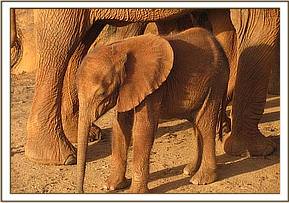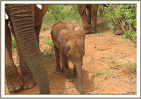 In May 2009, during a routine surveillance patrol, the Keepers happened upon all our orphans in amongst a large number of wild elephants at Ngutuni Ranch, and ele friendly ranch bordering the Park, and were delighted to find that Edie in amongst Emily’s group also had a newborn baby, whom we named “Ella”. Both newborns were happily playing together and looked in excellent health.