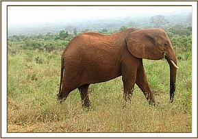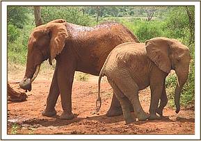 Emily is the Matriarch of her now wild “family” of orphans, named above, and she too has lately been attracting the attention of visiting wild Bulls, and has been seen to have been mated on several occasions. Emily originated in Tsavo West, and came to us in October l993, orphaned by poachers when just l month old. She grew up to become the Matriarch of the Voi Unit, and still keeps in regular touch with the still dependent youngsters, despite the fact that she is now living wild and free. She is now a cow of 14, but we feel that Aitong might well “pip her to the post” in terms of a first baby.