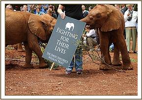 Elephant orphans in our care, many of whom have lost their mother's to ivory poachers, walked side by side with their keepers and the public, under the banner - Fighting for their lives!