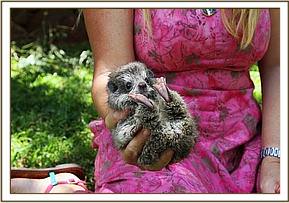 Alfie has since been continuing to feed extremely well, bonding with the family and all the staff, loving to crawl down tops and sit on shoulders before whining and nuzzling for his next milk feed. Alfie is by no means the first hyrax to come to the orphanage. Several hyraxs have been successfully reared and rehabilitated back into the wilds of Nairobi Park, but they always choose to stay close to where their human family are. Oomphy, the last hyrax to join the orphan household is still very much around, coming in daily for some soya milk and oats, a treat that he doesnt need, but loves to indulge in when there is someone around to dote over him.