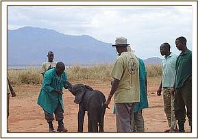 We in Nairobi were alerted the next morning (3rd October - again a Sunday!), but unusually hit a snag for there was not one aircraft available at Wilson airport to undertake the rescue, all being out due to the recent resurgence in tourism. The only available plane belonged to a new Company called Safari Link who were not prepared to undertake the rescue for less than full commercial rates, so saving little Jipe turned out to be a very expensive exercise. However, when dealing with the life of an elephant, and especially one that is newborn, time is of the essence, and cost considerations do not come into it, for an elephant life is precious. For us little “Jipe” represents a milestone for the Trust’s Orphans Project, for he is the 60th infant African Elephant to have been saved. That after all, in our book at least, is something that cannot be quantified in monitory terms, support of wildlife being our very “raison d’etre”!