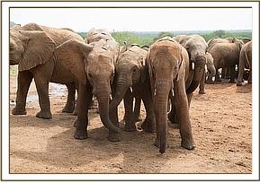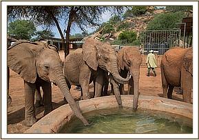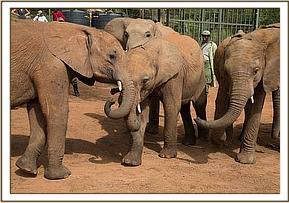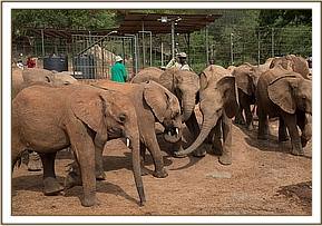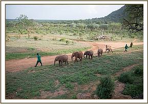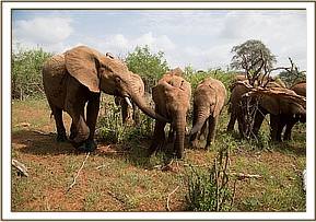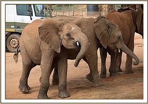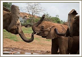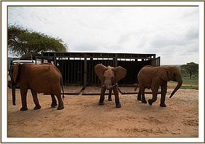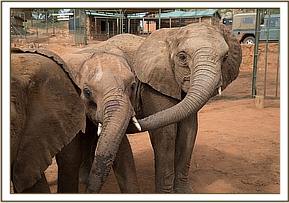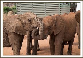 Once the convoy turned off at Kibwezi they were met by a number of diversions now that the original the dirt road is under construction and being tarmaced. This slowed proceedings down, but still they arrived at the Ithumba stockades in incredibly good time, and by 9.30am the babies were walking out of their compartment to face a new day in a new land. Kauro knew exactly where he was appeared delighted to be back at Ithumba as he exited the truck. Sapalan was certainly taking in the unfamiliar surroundings but remained surprisingly calm and was warmly greeted by Dupotto, Roi and Wanjala, and Namalok initially looked rather confused.