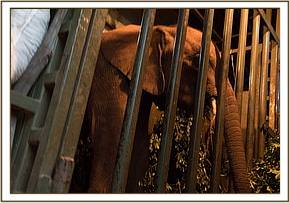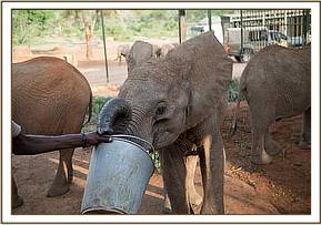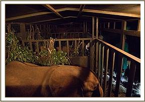 We have learnt over the years that the journey undertaken at night, while cool with few vehicles on the road, is the right approach, and so it was that excellent time was made. The three orphans were loaded into their designated compartments with easy access to each other despite the separating bars, with Sapalan sandwiched in the middle compartment, and plenty of cut greens and ample bottles of milk to accompany them. Namalok with his quirky ways, having to be fed his milk from a bucket had his bottles poured into his bucket and happily continued his routine of sucking up the milk with his trunk and then bringing it to his mouth as oppose to taking it directly from the bottle. Before being loaded they were lightly sedated to keep things calm for the journey, and remained calm and collected throughout, with the exception of Sapalan who clambered around his compartment initially as the truck pulled away, but the rocking motion soon settled him and the three of them continued to feed throughout. They were accompanied by three of their favourite Nursery Keepers and their presence was reassuring. It is important that they have the continuity of the men they know and trust while they get familiar with their new environment so their Nursery Keepers will remain with them at Ithumba for some time until they are comfortable in their new environment. Kauro it seems knew from the outset exactly where he was headed!
