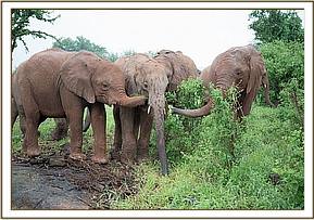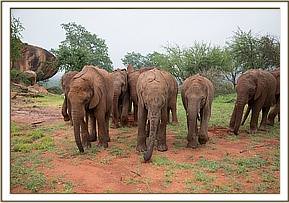 They took some more milk, and were then led to the mud bath where they took their fill of water and cooled themselves down. Then more of the dependent Ithumba orphans joined them and there was great excitement as old friends were reunited with Kauro, and Namalok became the gentle favorite with the dependent babies in an instant. Sirimon was the only one who had a tendency to bully, trying to assert himself early on with the new boys Namalok and Sapalan. Kauro immersed amidst old friends appeared totally at ease and comfortable and very happy to be back. For the other two, who have been wild elephants for three years up until three months ago remember the wild well, but they were very definitely bewildered by events! It was not long before they too settled and enjoying the abundant browse and food surrounding them, because right now Ithumba is a veritable paradise, a jungle of greenery, creepers and wild flowers. As the next days passed it has been so lovely to watch Namalok and Sapalan, rescued as lonely abandoned calves each with a bleak future, now have the company of elephant friends, in a new magical home that is quite literally elephant country, with miles and miles of pristine wilderness, elephant age mates as company, and many wild elephants to fraternize with every day and to see them healthy and happy with a fresh start feels good.