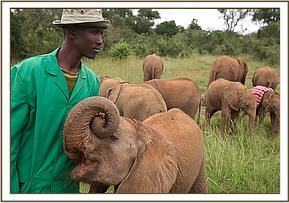 Since becoming an elephant keeper Adano has been amazed by the intelligence of elephants, as just like humans they respond to love and tenderness, which he never believed an elephant could be capable of until knowing them intimately.  Although the Keepers must not bond to a specific orphan, ‘Mutara’ is Adano’s favourite at the Nairobi orphanage because of her maternal nature and endless care and love of the younger orphans.
