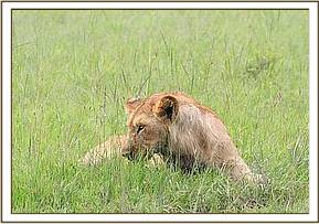 Dr. Limo, confirmed that up to five lions had suffered from ingesting a poison of some description including a 2 year old sub adult male whose mother is Sienna, the lioness we have successfully treated for severe injuries on a number of occasions. Sienna remains unaccounted for, while the 2 year old son has responded well to treatment and is looking brighter today, having been guarded all night to keep him safe from Hyenas as he recuperated.