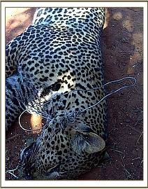 I, Patrick Mutuku team leader of the Ithumba desnaring team, received a report on the 21st of January regarding the slaying of a leopard by the Muathe community on the boundary of the Northern Area of Tsavo East National Park just as the David Sheldrick Wildlife Trust’s Desnaring Team Leaders were making their way back to their posts following a 2 day training period at Voi. I immediately reported the incident to the KWS Warden at Mutomo who happened to be at Voi at the time and together we headed straight to the sight. The leopard’s territory was the rocky mountain behind the village, and in recent months it had become bolder, coming closer to their livestock bomas at night, and even killing one of their goats. The community took action and laid a number of snares and animal was eventually trapped in a snare laid by a woman from the village. On discovering the terrified animal, trapped by its front foot, the community set about battering it to death with wooden rungus, machetes and stones along with shooting it multiple times with poisonous arrows, so that it eventually died a slow and horrendous death.