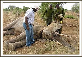 Let us not be complacent about the plight of elephants in Africa. They are constantly under threat, not just through poaching to satisfy the illegal ivory trade driven by China, who is the single largest buyer of illegal stocks, but also due to increasing human wildlife conflict, as human populations expand and cultivate and occupy ancient migratory routes, through climate change and loss of habitat. Today’s elephants suffer greatly at the hands of man. The David Sheldrick Wildlife Trust’s Veterinary Units come across many of these cases and are sometimes fortunate enough to be able to treat and save the animals, but all too often our intervention comes too late. Seeing such decimation monthly against the backdrop of the CITES Secretariat now allowing the sale of the Southern African stockpile, including that of Zimbabwe, and sanctioning China to become a legal bidder, is shocking, to put it mildly, in view of the known fact that China is the largest dealer in illegal ivory and as such responsible for fuelling poaching throughout Africa.. Zimbabwe has, and is, massacring its elephants wholesale, turning them into biltong and crocodile food, exchanging ivory for guns from China to kill its own people and turning its country into a faunal desert. Why should they benefit financially from this stockpile sale sanctioned by CITES? Why does CITES favour the richest countries in Africa and ignore the plea of the poorest, who have already lost most of their elephants to China? China’s insatiable demand for Ivory will surely see the end of Africa’s elephants and that the CITES Secretariat, charged with overseeing the protection of the world’s endangered species, should ignore the advice of its own agencies such as TRAFFIC, ITIS and MIKE, all of whom acknowledge the threat that China poses to elephants, and also ignore the advice of Africa’s poorest countries, is surely unforgivable. It is also extremely demoralizing to organizations such as ourselves who work tirelessly to try and save elephants, and have to constantly witness firsthand the suffering, death and destruction resulting from the illegal ivory trade. More shocking still is to know that the British Government under Gordon Brown was a party to the decision taken by the CITES Secretariat, irrespective of the evidence, and despite the advice of those in the know. This is a betrayal of the wishes of the British people as a whole who care and care deeply about the survival of elephants. It makes a mockery of CITES revealing it in its true colours - an organization driven by trade, rather than the protection of the world’s most endangered animals. Below are some of The David Sheldrick Wildlife Trust’s Veterinary Unit elephant cases for the month of June. This sub-adult male elephant was sighted near the Main Governors Camp in a swampy area in the Masai Mara, approximately 5 years old. He had a deep penetrating wound on the left shoulder that extended to the scapular bone. The wound was heavily infected and discharging pus and obviously extremely painful as he could not move much and preferred staying alone in a swampy area where he could readily get water and food. The elephant was darted and the wound was examined and probed by gauze swabs attached to a long forceps. Most of the soft tissues were infected and the wound had pierced through to the scapular bone. It was full of tissue debris and pus accumulation. The wound was cleaned with water mixed with 10% hydrogen peroxide and later treated with a tincture of iodine solution. Other treatments included administration of long-acting (20%) oxytetracycline intramuscularly and multivitamins. The wound was also sprayed with oxytetracycline spray to keep off flies and enhance healing. The prognosis is good after the treatment as fortunately he was still in good body condition and only the soft tissues were infected. The David Sheldrick Wildlife Trust’s Tsavo mobile veterinary unit was called upon to administer treatment of another spear injury, this time on the left thigh in an elephant bull at Oldonyo Wuas in the Chyulu Hills. The intervention was done at the right time just when the infection was starting to set in. The wound was cleaned thoroughly and treated topically and systemic antibiotics administered. We do expect this elephant to recover without further complications. Very sadly we had to euthanize a seventeen-year old female elephant at Satao in Tsavo East National Park. She suffered a horrendous injury caused by a tight cable snare around her neck. This had caused an extensive deep wound, particularly on the lower side of the neck. The prognosis for recovery was extremely poor and she was put down to stop further suffering. In June an eight-month old elephant orphan calf was sighted by tourists alone at Lake Jipe in Tsavo West National Park. When our Ziwani desnaring team and veterinary unit caught up with the calf it became obvious the calf suffered from extensive injuries that were heavily infected. As a result of not having the protection of her herd this orphan calf had sadly been spotted too late, not before predatory attacks (possibly hyena) had destroyed the anal region and the tiny calf could not have survived without intensive reconstructive surgery, and even then the prognosis would still have been guarded. Euthanasia was considered necessary to stop further suffering. This was achieved with 40ml of 20% Pentobarbital sodium (Euthatal®).