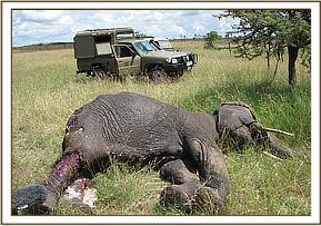 After the treatment, the stench subsided but still it was able to attract a pack of hyenas who were bent on turning the weak elephant into their meal but then Rob and Sarah came in handy because they kept her company most of the time during which she would spot their vehicle and immediately lie down to sleep for several hours without having to worry about the hyenas because they would secure her by chasing them away.