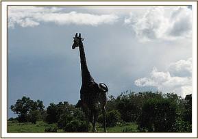 On this occasion a Rhino surveillance unit came across an adult male Masai giraffe with a long spear protruding on its back. The location was just on the periphery of the Reserve and that particular giraffe family is known to move in and out of the reserve from time to time. The patrol team immediately notified the Mara Vet Unit via mobile telephone and the response was prompt. The Patrol unit had kept guard of the giraffe until we arrived at the scene.