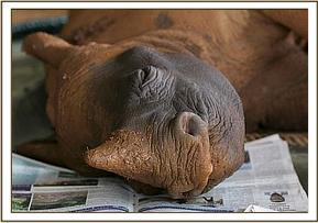 21st March 2007 saw the cataract operation on the left eye of our blind baby rhino, “Maxwell or Max”, found abandoned in the Nairobi National Park forest a month ago in February. Since he is about one year old, it is very doubtful that he was actually born blind for had that been the case, it is unlikely that he would have been in such good condition. Having verified that he was suffering from “bilateral cataracts” in both eyes, we all stood by with bated breath, as our Vet, Dr. Deiter Rottcher, handled the anaesthesia and Kenya’s top Eye Specialist, Dr. Peter Schwendemann prepared his instruments.