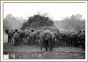 The first half of the journey was smooth and uneventful down the main Mombasa tarred road until Kibwezi town where the trucks were re-fuelled before embarking on the grueling part of the journey on an appalling dirt road (which can barely even be termed a road). Slowly the convoy bumped and lurched over rutted wash-aways, erosion gulleys, broken culverts and dust 6 inches deep, until finally the convoy reached the Park Entrance Gate and the beauty of the natural world replaced the wall of impoverished humanity and their emaciated livestock. Once inside the Park Gate, the Landrover escort overtook the trucks carrying the elephants, in order to be at the other end when the elephants arrived and to warn the IMAX crew to prepare themselves.