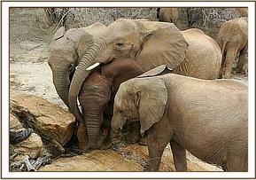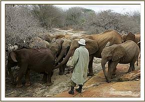 Back in the Nursery, surprisingly, Sian instantly took charge of the remaining six babies, shepherding them out to the forest and ensuring that all were present and correct by rushing from the top of the column to the back. Makena has become very motherly towards little Chyulu, and is already attached to Sian, so the transition for her was not as traumatic as we had expected, although there is no question that the whole unit miss their friends Kora and Lualeni.