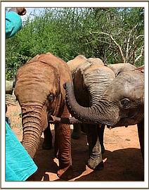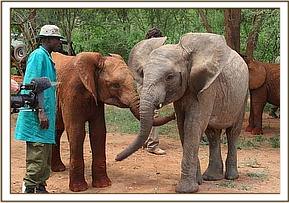 Back at the Nursery, that Thursday morning, we anticipated some problems with tiny Makena, who would no doubt feel the loss of Naserian, whom she loved so obsessively and deeply. The Keepers were instructed to take with them playthings to distract her – the ball that the Nursery elephants loved kicking about, the rubber tube that they enjoyed romping in, with instructions to try and divert her attention. Makena cried a little at first, rushing around in search of Naserian, but Lualeni immediately rounded her up, and gently brought her back into the fold. Obviously, a subtle message had been received by baby Makena, for she instantly settled down, and battened onto Lualeni, in the same way as the had Naserian. Lualeni was overtly delighted to suddenly find herself as the Queen Bee of the Nursery, a position for which she had longed ever since Makena usurped her position as Naserian;s “favourite”. Challa and Zurura who have found solace in each other’s similar predicament, both sharing a sense of deep loss being only newly orphaned, could grieve and heal more peacefully, whilst Kora, who had already befriended Challa, seemed to enjoy suddenly being the Big Boy of the group, no longer having to share the human family with two older age-mates.