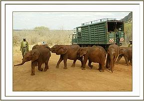 surprised everyone by venturing in first, followed by Nasalot, who bolted in to join her friend when she was startled by a loud noise. Within moments the first truck was on its return journey to the North. Then it was the turn of Yatta and Kinna,