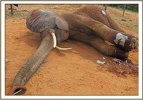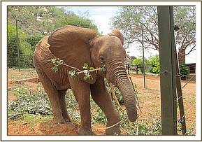Happily, the improvement was noticeable even the next day. The swelling had substantially subsided and she could put more weight on that foot. The Keepers continued the follow up treatment and Ndara meanwhile greatly relished regular visits and attention from the Keeper Dependent Orphans, numbering 13, as they left their Night Stockades every morning and when they returned again in the evening or attended the Stockade mudbath at noon. She was provided with freshly cut green browse and supplements, her own mudbath in the Enclosure, and the love of her erstwhile human family again. Now, she is able to leave her Enclosure to browse nearby during daylight hours, but happily returns for the night, so that she can lie down and sleep peacefully, knowing that she is totally secure. We are, indeed, exceedingly grateful to the Vets who were more than helpful and we are immensely relieved that Ndara is well on the road to a full recovery, and will soon be able to rejoin Emilys unit of our now wild Ex Orphans. Her Story is yet further proof that our Ex Orphans now living wild, who face many hazards as do their wild counterpart, are luckier in that they know where to come for help when needed yet further proof of the intelligence of Elephants.