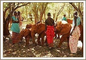 It was a special day when on the 21st of February 2005 the very same Samburu Warriors who rescued a tiny distraught elephant on 26th November 2003, wedged deep in a well dug by tribesmen in a dry Northern sand lugga, were able to spend two days with the now fat and boisterous Ndomot.