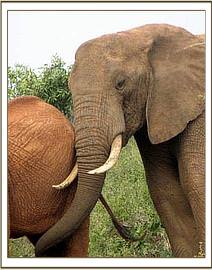 When they had past their second birthday, Ndume and Malaika were transferred to the Voi Rehabilitation Centre to begin their gradual reintegration back into the wild elephant herds of Tsavo East National Park. There Malaika grew up to become the Matriarch of the Tsavo herd, once Eleanor had relinquished her leadership to join the wild community, but sadly her story does not have the happy ending of that of Ndume, for she was destined to die in childbirth aged l0, unable to give birth to a very large bull calf that was lying breach. Following the devastating loss of both Malaika and her baby, which was felt deeply by all, both human and animal, Ndume grew up alongside his ex Nursery male friends, namely Dika, Edo, Imenti, Uaso and Lewa with Emily as the Matriarch that replaced Malaika. By the year 2,000, he qualified as one of our BIG BOYS, once he had begun to leave the orphaned fold to wander apart and independently with his male peers, Dika, Edo and their wild friends, as adolescent bulls always should.