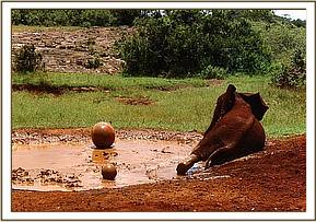 Thereafter, Ndume, Lewa and Imenti were three of our Big Boys who fell into bad company, led astray by two wild age-mates who habitually took them into neighboring Voi town during the nights, and this was, of course, another recipe for disaster. In order to save them being shot as “problem elephants” it was imperative that they be moved to safer surroundings, and so, on the 5th October 2001, all three young bulls were moved to Tsavo West National Park, and released in the Ngulia Valley far from human habitation, l00 miles away from home. For this journey they were sedated, crated, and moved in the KWS Elephant Carrier named “Hannibal” and with a heavy heart we bade them farewell in what we believed would be a new and better home. However, Ndume didn’t think so, and nor did Imenti. Astonishingly, just three days short of one month later, at the end of November 2001, who should suddenly turn up back at the Orphans’ daily mudbath in Voi, but Ndume, feeling very aggrieved to have been subjected to such a long walk back, something he had mysteriously been able to accomplish despite never having set foot in Tsavo West before! Imenti was not so brave, and also uncomfortable in his new surroundings, so he took to frequenting the grounds of Kilaguni Lodge searching for his lost human family, since he could remember no other, having lost his elephant mother the moment he was born. In the end, after having scared some of the Lodge inmates by inserting a hairy trunk over the wall of the Staff Showers to trap water and take a drink, we sent his favourite Keepers to bring him also back home, an epic journey documented on our website which spanned 5 days. Only Lewa, who was much younger, stayed put, assimilated into the wild community and has never returned to our knowledge.