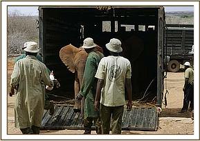 The trucks that carry the young orphans on the six hour journey were backed against the loading ramp days before in order for the Nursery Keepers to practice loading with the tempting milk bottle brandished in front of them. It seemed to be working well, Orok and Sidai sharing a lorry as the two of them are inseparable, and Challa in a truck all of his own.