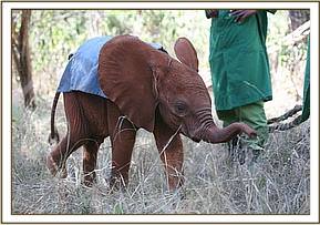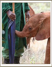 We have a little Cherub in our Nairobi Elephant Nursery – 4 month old baby Naipoki, who was orphaned when just 3 months old, and rescued from a well in far off Namunyak Conservancy on the 15th December 2010. Naipoki is unique in that she oozes intelligence and charm, and from the very beginning, all l7 other baby elephants in our Nairobi Elephant Nursery, who were strangers to her, responded instantly to her unique personality and adored her from the start, as did all the Keepers. There was not one that was jealous of the attention given her by the Keepers, and this, in itself, was unusual, especially when a Keeper called Misheck Nzimbi is concerned.