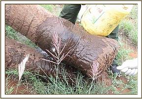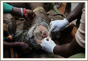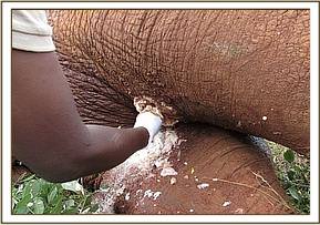Arrow Wound: Bobo is a collared elephant that raised concerns through GPS readings and was found to have several arrow injuries to the rump, thigh and flank