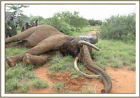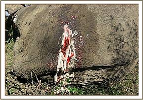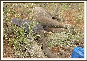 Poaching Death: One arrow head found inside the head. Elephant died from poisoned arrows