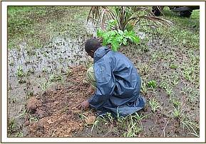 During the last month of excellent rains across the whole of Kenya, Amu Ranch has also benefitted, restoring the fresh water sources and natural wetland ecosystems that are the lifeline for wildlife in the area. Our staff in conjunction with the communitytook advantage of these ideal growing conditions to plant over 300 indigenous Mbambakofi (Afzeliaquanzensis) trees yesterday (10th May) that had been nurtured in our tree nursery at Amu Ranch, and are further targeting to plant another 2000 throughout the rest of the rainy season (over the next 2 months or so).