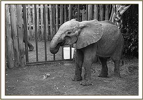 It was all just too much for this tragic little elephant rescued on the 6th September 2005 from community lands abutting the Shimba Hills National Reserve. Partly healed scars and wounds on his body were gruesome testimony to the aggression and harassment he must have endured since the loss of his elephant family from that notoriously un-ele-friendly agricultural community amongst whom he found himself, orphaned and alone, which is mainly comprised of tribes well known for a tendency to kill and eat any and every living thing. Desperately trying to escape a gruesome end for what must have been at least l0 days without the protection of his elephant family, then being overpowered for the rescue and surrounded by hordes of chattering and excited enemy, all of whom wanted to prod and touch him, before the 60 mile journey in the back of a pick-up to the Voi Stockades; then further man-handling into and out of the rescue plane, and the final journey to the Nairobi Nursery, plus the mandatory anti-biotic injections from the Vet, was all more than he could take. But, at least he enjoyed l full day of milk again, but on the second day, he succumbed to the dreaded pneumonia exacerbated by chronic diarrheoa. As he was dying, we also noticed that he could also previously have suffered a broken rib.