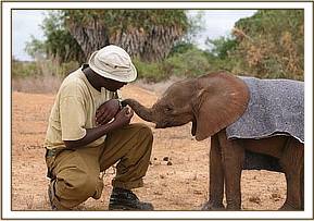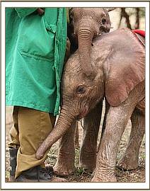30th November, 2009 - yet another tearful day in our Nairobi Nursery, which saw the death of our tiniest and most fragile Nursery baby – the little elephant named Sala, who just strolled into a tented camp outside the Sala entrance to Tsavo East National Park. She had put up such a brave fight for survival, but the odds were never in her favour, having been fed cows’ milk well-meaningly by the Staff of the Camp.