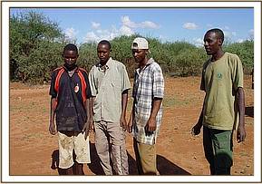 Having established that the calf had been spotted, the rescue plane, this time a Caravan, set off, complete with all the paraphernalia needed to capture an orphan of Challa’s size. The calf was estimated to be over a year old, so actually catching him and subduing him proved a very challenging task, despite his emaciated and weakened condition caused by having been deprived of his mother’s milk for so long. Three stalwart local teenagers, named Mboi, Maingi and Chale, were instrumental in the successful capture of this calf, and we thank them and the Elders of the village for wanting to save his life. Although he had been allowed to travel with the cattle during the hours of daylight, he was not allowed into their thorn bush “Corral” at night, and is lucky not to have ended up making a meal for a predator.