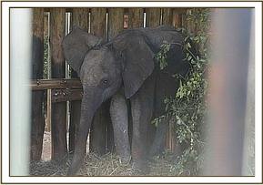 All this, however, was not immediately obvious upon arrival in the Nairobi Nursery, where she was given the usual prophylactic antibiotic injection before being unbound in the “Taming Stockade” recently occupied by orphan “Sian”. Understandably, the newcomer was extremely traumatized and very wild, refusing to take milk or rehydration, and simply bent on trying to “nail” her attendants at every opportunity. Desperately the two Keepers who spent the night with her tried to coax her into accepting milk – the lifesaver she so desperately needed, but by the next morning, even our Veteran Keeper, Misheck, had not been successful. The other orphans were then brought in and this calmed her visibly. Within another 2 hours, she was beginning to take milk from the bottle, but refused the vital electrolytes. Although the milk intake was a hopeful sign, shortly afterwards the dreaded trembling and shaking began, which is always a prelude to collapse and death. We despaired, but very fortunately we had some bottles of Dextrose intravenous drip left over from another such casualty, and Robert was able to put this into an ear vein pending the arrival of the Vet. This, plus handfuls of glucose stuffed directly into the mouth, clearly kept the elephant alive, but only just, until the Vet arrived with more bottles of intravenous dextrose drip and administered injections of selenium, magnesium and Vitamin E as well as Vitamin B 12 to stimulate her appetite. Clearly the calf had extremely low blood sugar levels, brought about by milk deprivation and the trauma and stress of capture, and that this had resulted in “muscular dystrophy”, a life threatening condition. Being a muscle, the heart begins to fail, and very soon the patient is gone. On this occasion, however, we were rewarded when with help, the elephant was able to get back onto her legs, and shortly afterwards began to take milk from the bottle, all signs of aggression having vanished. We were euphoric, and really thought that we had won the battle for her life, but another trembling attack seized her the next morning, and yet again Robert most fortunately was at hand to put the intravenous drip back into an ear vein. This time, Sedai remained standing, and as the blood sugar levels were again restored, so the trembling ceased.