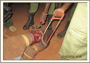 On the 1st of January 2014 KWS reported to our Voi Elephant Keepers a case on Sagala Ranch, adjacent to Tsavo East National Park, that required a rescue team. Only once the team arrived on the scene did it become evident just how bad the situation was. A young yearling calf with a horrendous cable snare caught tightly around her front leg, almost amputating it, was the victim of a snare obviously set targeting an adult elephant. The pain she must have been in was unimaginable.