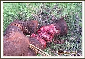 After the third day she began to take a little milk from the bucket, but being a milk dependent calf, the fact that her feeding was so poor, compromised her strength and slowly she became weaker. We tried simply everything, but of course the pain must have been a huge factor. The wound appeared to be healing, although much of the bone remained exposed. We all prayed for a miracle, for watching such an innocent animal suffer so much was enough to break anyone’s heart, and it was very traumatic for those who had to witness it day in and day out. Sagalla sadly lost her fight and the chance of a full and wild life. She died at 4.00pm on the 8th of January.