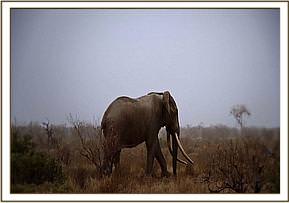 Under pregnant skies the DSWT funded mobile veterinary team moved in for the second veterinary treatment of the day on the 15th of September. A magnificent bull, one of Africa’s monuments, together with a group of bull friends (Askari’s), wandered the plains of Tsavo with a wound clearly visible to the DSWT pilot (Neville Sheldrick) who identified him being in trouble from the air.