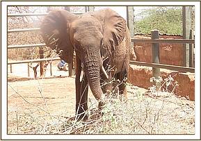 This was a most encouraging sign and gave us all renewed hope. Even the next day he fed well, and all the while new and varied browse was placed in his stockade, along with water and soft earth and mud for him to enjoy. But then the following day he was standing still, head hung, fluid still coming from his mouth, with a complete lack of appetite. He was given more anti-inflammatory drugs via pole syringe and again perked up once the pain was lessened. That thankfully was the last day he showed these signs, since then he has fed well, calmed down enormously and is healing well. We were confident that with tender loving care we would be able to save Ajali.