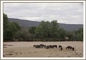 During this extremely dry year, rivers have been drying, exacerbated by the illegal logging of forest catchment areas, starving domestic livestock have invaded the Park in growing numbers, compromising the food reserves for hippos and other grazers, and exacerbating the loss of wildlife through starvation and drought. One of the most seriously affected species have been the hippos, who rely on water in which to submerge themselves during the day, and graze at night within reach of permanent water when conditions are cool and their skin cannot be damaged by exposure to sunlight. Literally hundreds of hippos have perished in Tsavo, even those at the famous Mzima Springs, and many occupying the remaining pools on the Athi river below the Saa Nane house on the Trust’s land, have also run very short of food.