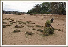 The Trust has been helping the hippos, buffalos numerous other species by purchasing Lucerne from up country which was laid out along the sand banks. For many weeks months ago the hippos ignored it but suddenly one or two decided to taste this strange new food that appeared so unexpectedly and loved it. One or two hippos turned to 8 others, then increased to 14 as the word got round. Today no less than 48 of this quaint “River Horses” come running to line up below the banks for their Lucerne fix as soon as the hear the tractor approaching. Like Elephants, hippos are extremely intelligent animals, known as the Policemen of the Rivers, for there have been many instances recorded when they have come to the assistance of other animals either drowning or caught by crocodiles. We pray for rain, as the Athi river has now completely dried and the Hippos huddle in drying mud pools and every day counts.