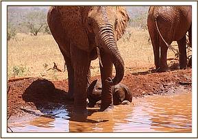 We are delighted to share the news that 16 year old Ex Orphan Seraa has become a mum! On the 9th February 2018 she returned to the Voi Stockades together with her wild born calf, a boy, whom we have named Solar. She was escorted by Nanny Wasessa who was doting on the newborn baby boy as well.
