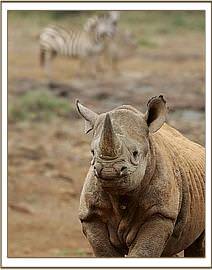 Shida features prominently in this month’s Keepers Diary, for he has taken to frequently and escaping from, and deliberately evading, his Keepers, having obviously decided that he is now sufficiently confident on his own to qualify as a“wild” and solitary rhino, having been walked around the dungpiles and urinals of the wild rhino inhabitants of the area for the past three years. He has befriended a family of warthogs who are always in the vicinity of the Stockades to enjoy any left-overs from the Staff Canteen and who also usually join him out in the bush to benefit from the protection of him and his Keepers. Shida enjoys playing with them, challenging them to a butting bout, where he is always the victor, and even lying down to allow them to clamber all over him pulling ticks off his body. (Rhinos are very sensuous animals, and any rubbing or scratching of their body prompts them to collapse in a blissful stupor! He often also enjoys chasing the giraffe around, or, in fact, any other animal that will run from him, but wary of the resident buffalo bulls! On many occasions this month he has been absent all day, turning up unattended at the mudbath at unexpected times, and bringing himself back to his Night Stockade long after dark. When he returned at 10 p.m. on the night of the 31st, he was accompanied by another adult wild rhino friend, who lacked the confidence to actually enter the Stockade with him, but was seen by the Keepers who were with Kora and Lualeni in their Night Stockade. It is very gratifying to know that Shida has an adult wild rhino friend, and that his reintegration back into the wild community has been successfully accomplished. This is always a challenge when hand-rearing the orphaned rhinos.