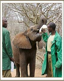 It has happened often before, but each move presents a different challenge, a different set of traumas and an equally powerful emotional fallout for all left behind in the Nairobi Nursery. However, the move of Sian, Kenze and Loijuk, as the 24th May 2007 dawned had a special meaning for those of us who have worked intimately with these three elephants for many months, to heal them both physically and psychologically. Kenze and Loijuk especially, will always live in our memory as two miracles of Christmas 2006. Both arrived in an emaciated, and pathetic condition, and one look at them upon arrival convinced us that neither would make it. Loijuk was 7 months old when she came to us, her mother slaughtered by poachers near Wamba in the Northern Frontier and she was a bag of bones, so enfeebled that she could barely stand, exacerbated by the dreaded tell-tale indication of life threatening pneumonia, fluid pouring from her trunk. She is one of just three of many pneumonia victims whose life we have managed to snatch from the jaws of death, and she struggled valiantly for life as another new arrival next door gave up the ghost and died, just hours after arrival. Night-long intensive care involving essential oil massaging, plus a long course of antibiotic injections brought her round. There was no sign of anger from this beautiful little female elephant over her predicament, and the fact that she now found herself surrounded by the likes of others that had deprived her of her elephant family – she was far too weak for that, but miraculously, she gulped down her milk and miraculously, she lived and grew steadily stronger as the weeks and months went by, developing into the mother figure that comforted little orphan Chyulu when she arrived in the Nursery.