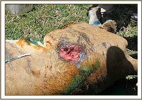 Again she was suspected to have been involved in a fracas with other lionesses in conflicting home range overlap and again her original wound had been opened up. After her wounds were cleaned and re-stitched she was given a guarded prognosis due to the extent of her injuries and the involvement of her old wound.