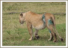 Nearly two weeks later Marsh Lioness Siena was sighted early in the morning by Governors camp head guide Moses Manduku and subsequently treated for the sixth time by the DSWT/KWS Mara Mobile Veterinary Unit. At the time of her last treatment Siena looked thin and emaciated but she has improved tenfold and looks well fed and much healthier than two weeks ago.