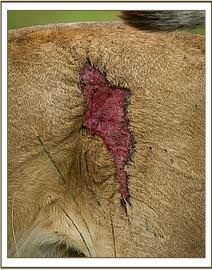 However, on the 14th and 28th April Siena only needed a further dose of antibiotics as the deepest part of the wound had already closed. The muscle was healing nicely and there was no sign of infection. Since then the skin has slowly regenerated and has now almost completely covered the wound.