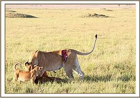 Governors Camp has reported back to the SWT that Siena’s wound has continued to heal and doesn't impede her in any way. She has been seen hunting and feeding well and her cubs couldn't be healthier.