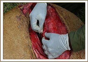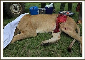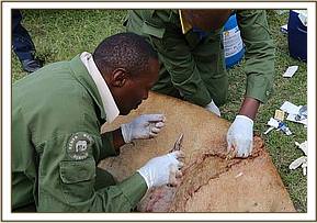 On 10th April the wound was a little infected so Siena was darted and the wound was cleaned and resutured.