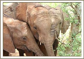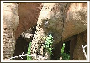 After the heavy rainstorms which graced Ithumba and northern Tsavo East during the previous couple of days, the entire area had been enveloped in lush green vegetation with pools of captured rainwater glistening at every corner. The sky was clear blue with cotton-wool clouds, the sun casting a heavy heat onto the earth below where the new arrivals were clearly feeling the heat.