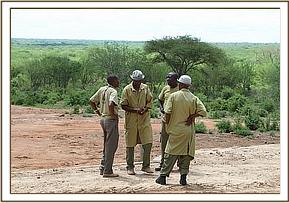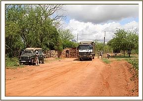 Back on the road and under grey skies and low dark clouds, the truck soon turned off the tarmac and headed east towards the northern sector of Tsavo East. This rough dirt road snakes over both the Athi and Tiva Rivers and through a gap in the Yatta Plateau to reach Ithumba. Plans had been made to meet the Canadian film crew at the bridge crossing the Tiva River so they could film Sities and her two Nursery friends arrival in Tsavo.