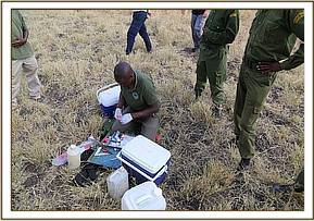 Two months later she was sighted again by the teams on the ground who had finally found her within a herd of 70 elephants still with the snare attached to her trunk. The Sky Vet Unit was immediately mobilised from Nairobi with KWS Veterinary Officer Dr Fred Olian’ga flying to the site in a helicopter on the afternoon of the 16th.