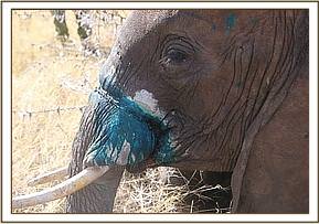 The veterinary team found the young female with the snare cutting into the flesh around the base of the trunk in close proximity to the mouth. It was noted that she was in good body condition and the snare had not cut too deeply through the soft tissue of the trunk.